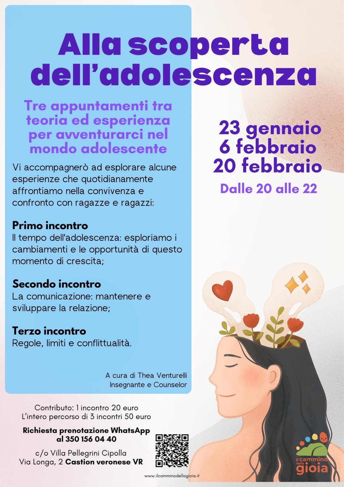 Gli incontri affronteranno temi centrali come il tempo dell’adolescenza, la comunicazione nelle relazioni e la gestione di regole, limiti e conflittualità. Il percorso è a cura di Thea Venturelli, insegnante e counselor.